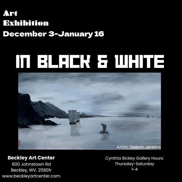 The Beckley Art Center invites you to experience In Black & White, a curated exhibition in the Gallery off the Beckley Art Center that celebrates the power of contrast, texture, and form. Stripped of color, each work relies on light and shadow to reveal detail, emotion, and structure, highlighting how artists use value alone to create depth and drama.